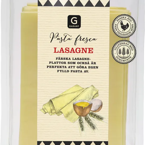 Färska italienska lasagneplattor. Perfekta i lasagne eller att göra egen fylld pasta av. Tillverkad med durumvete och färska ägg. 200 gram.
