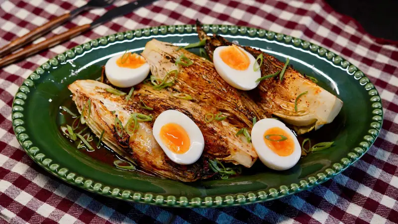 Bakad kål med kålens bästa vän, brynt smör. Här smaksätter vi det brynta smöret med soja, citron och honung. Servera med ägg för en större mättnadskänsla och laga det om och om igen!