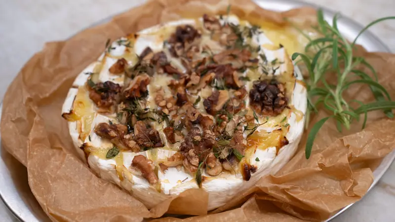 Ett självklart val på tjejmiddagsbordet! Ugnsbakad brie med söt honung, knapriga valnötter och doftande örter. Receptet räcker till 4-6 personer och är framtaget tillsammans med Emelie Johansson.