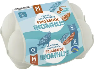 6 ägg från frigående höns inomhus M