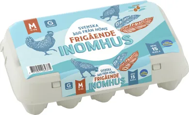 15 ägg från höns frigående inomhus M