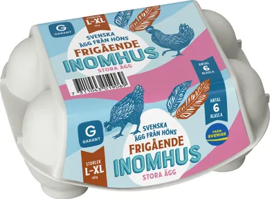 6 ägg från höns frigående inomhus L-XL