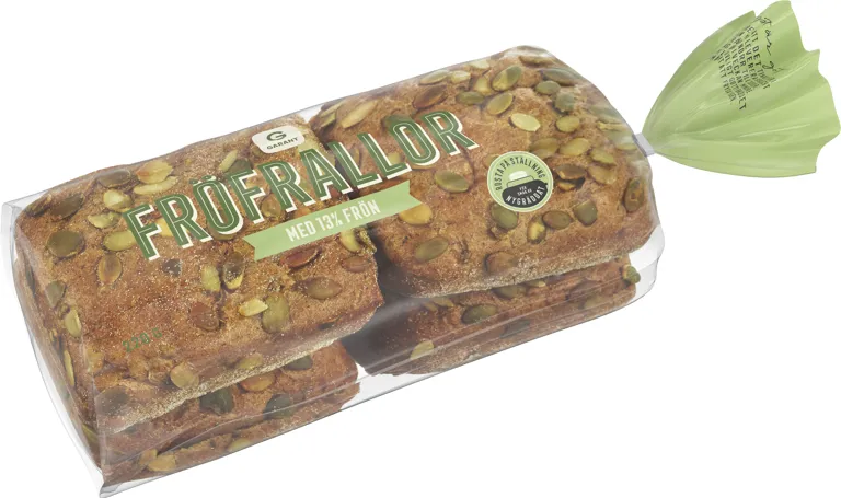 Frallor med pumpa- solros- och linfrö. Upptinat. Skurna i över- och underdel. 4 stycken. 220 gram.