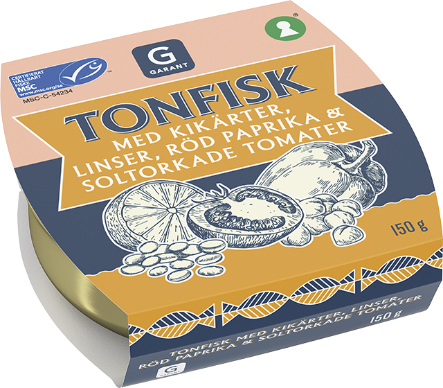 Tonfisk med kikärter, linser, röd paprika och soltorkade tomater