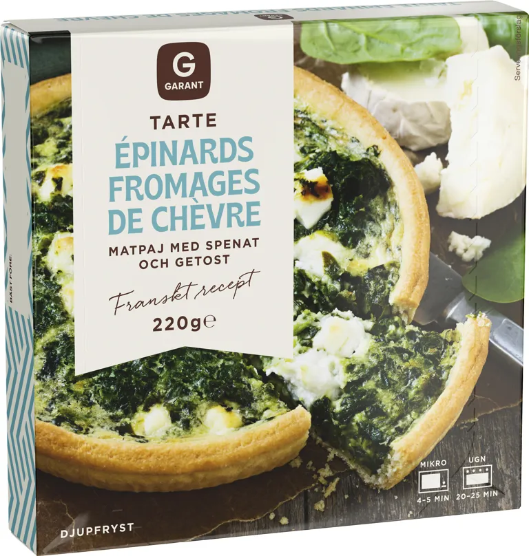 Tarte épinards fromages de chevre. Djupfryst matpaj med spenat och getost. 220 gram.