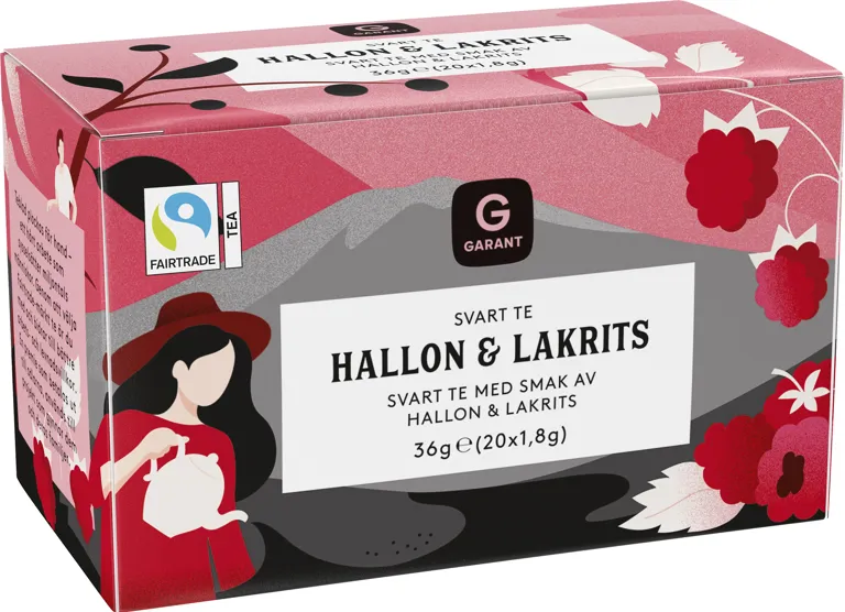 Svart te med smak av hallon & lakrits. Passar lika bra till frukosten som till en lugn stund på eftermiddagen. Allt svart te i produkten är Fairtrade-märkt, vilket garanterar att det är framtaget med omtanke om både människor och miljö. 20 påsar.