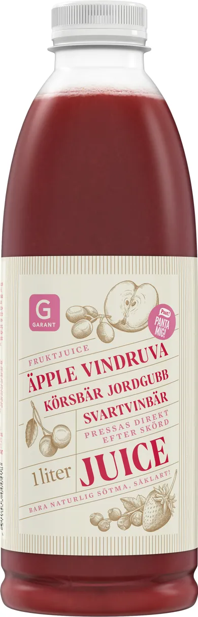 Juice äpple, vindruva, körsbär, jordgubb, svartvinbär