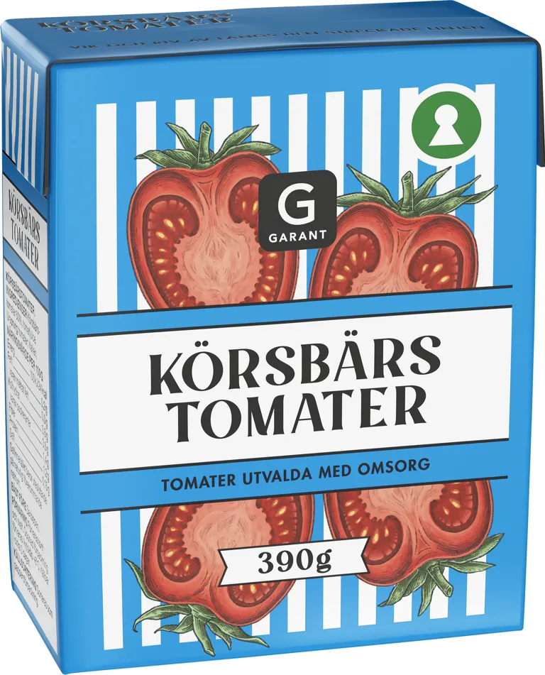 Solmogna körbärstomater. Av solmogna tomater som förpackas inom 24 timmar efter skörd. 390 gram.