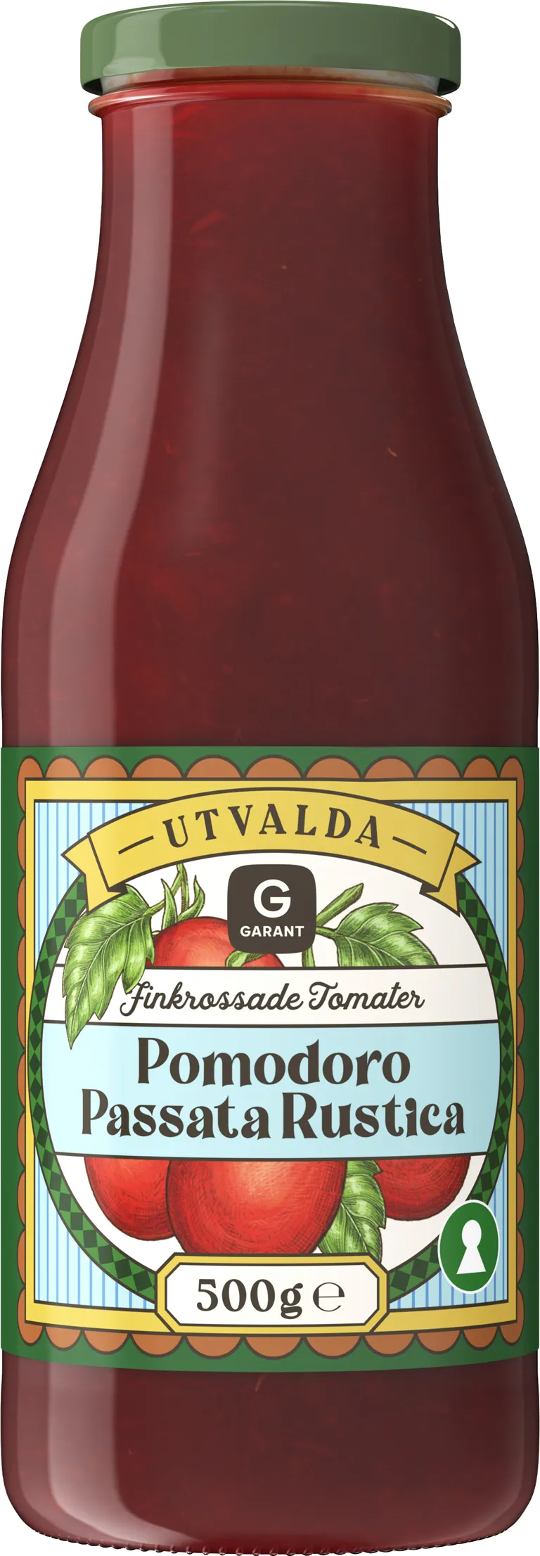 Garant passerade tomater rustica i glasflaska är gjorda för dig som älskar att laga mat med äkta smak. Gjord på solmogna italienska tomater, varsamt tillredda för att bevara sin naturliga sötma och fyllighet. Lyfter varje sås, soppa eller gryta! 500 gram.