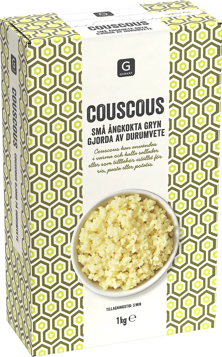 Små ångkokta gryn gjorda av durumvete. Kan användas i varma och kalla sallader eller som tillbehör istället för ris, pasta eller potatis. 1 kg.