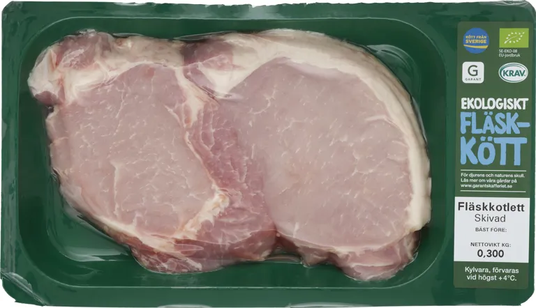 Ekologisk skivad fläskkotlett. Från svenska gårdar. 300 gram.
