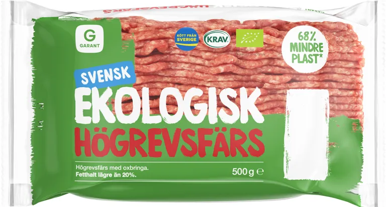Högrevsfärs med oxbringa KRAV-märkt fetthalt 20%, 500g,