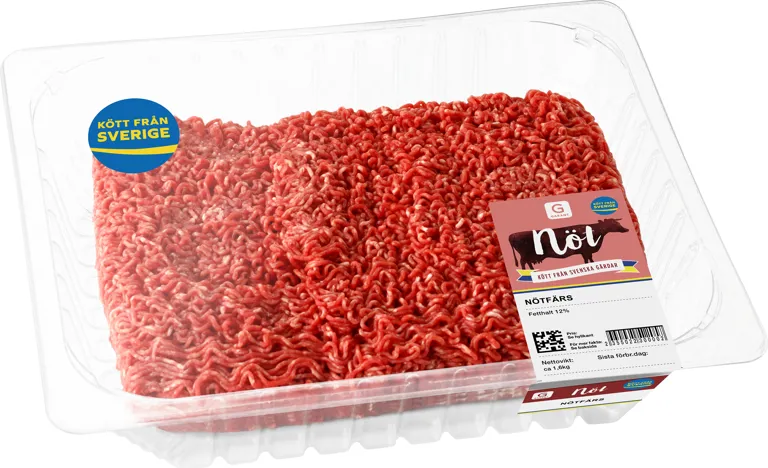 Kika närmare på vår fina nötfärs! Passar förstås bra till det allra mesta, som köttbullar, tacos och pannbiff. Tänk på att den ska genomstekas. Mums!