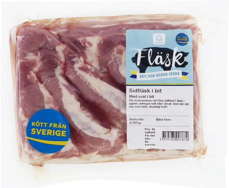 Sidfläsk i bit. Kött från svenska gårdar. Ca 750 gram.