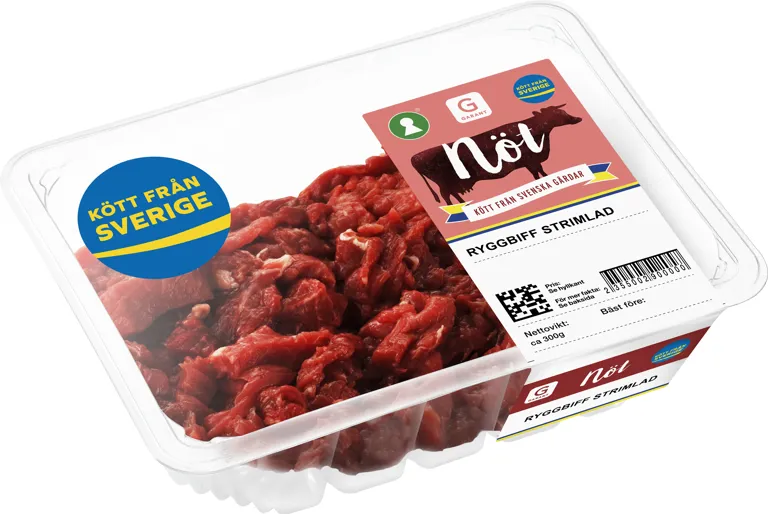 Kika närmare på vår fina strimlade ryggbiff! Passar extra bra till wok eller stroganoff. Bryn och krydda köttet och koka tills det är mört. Smaklig måltid!